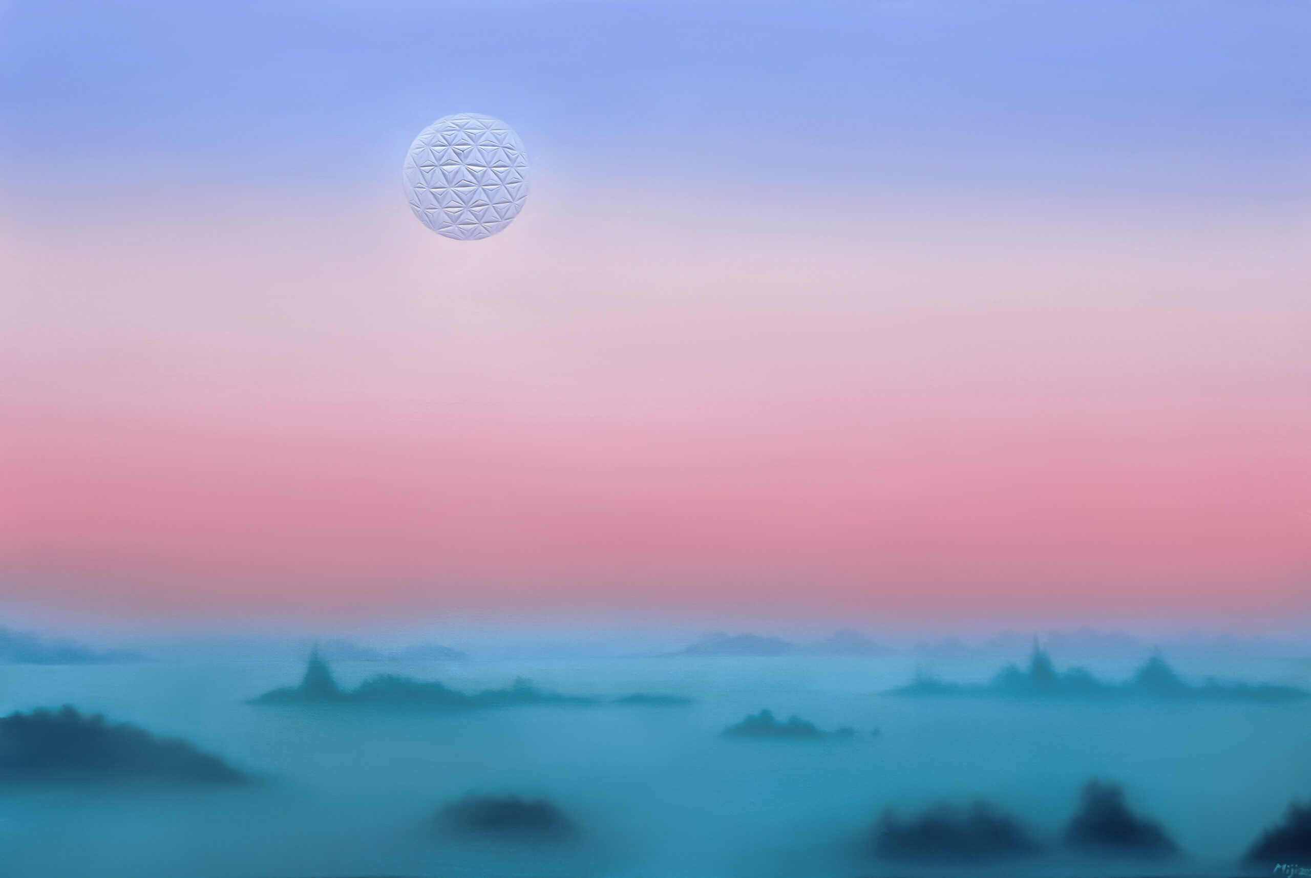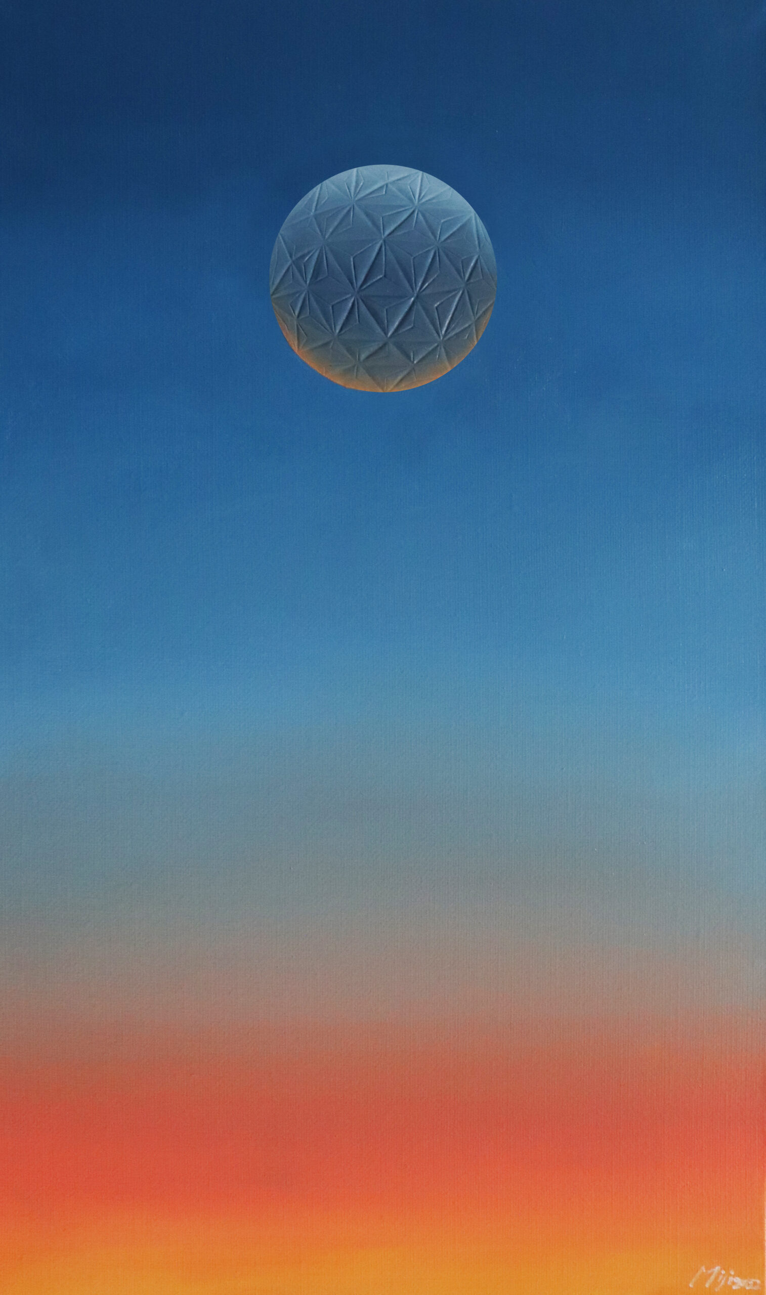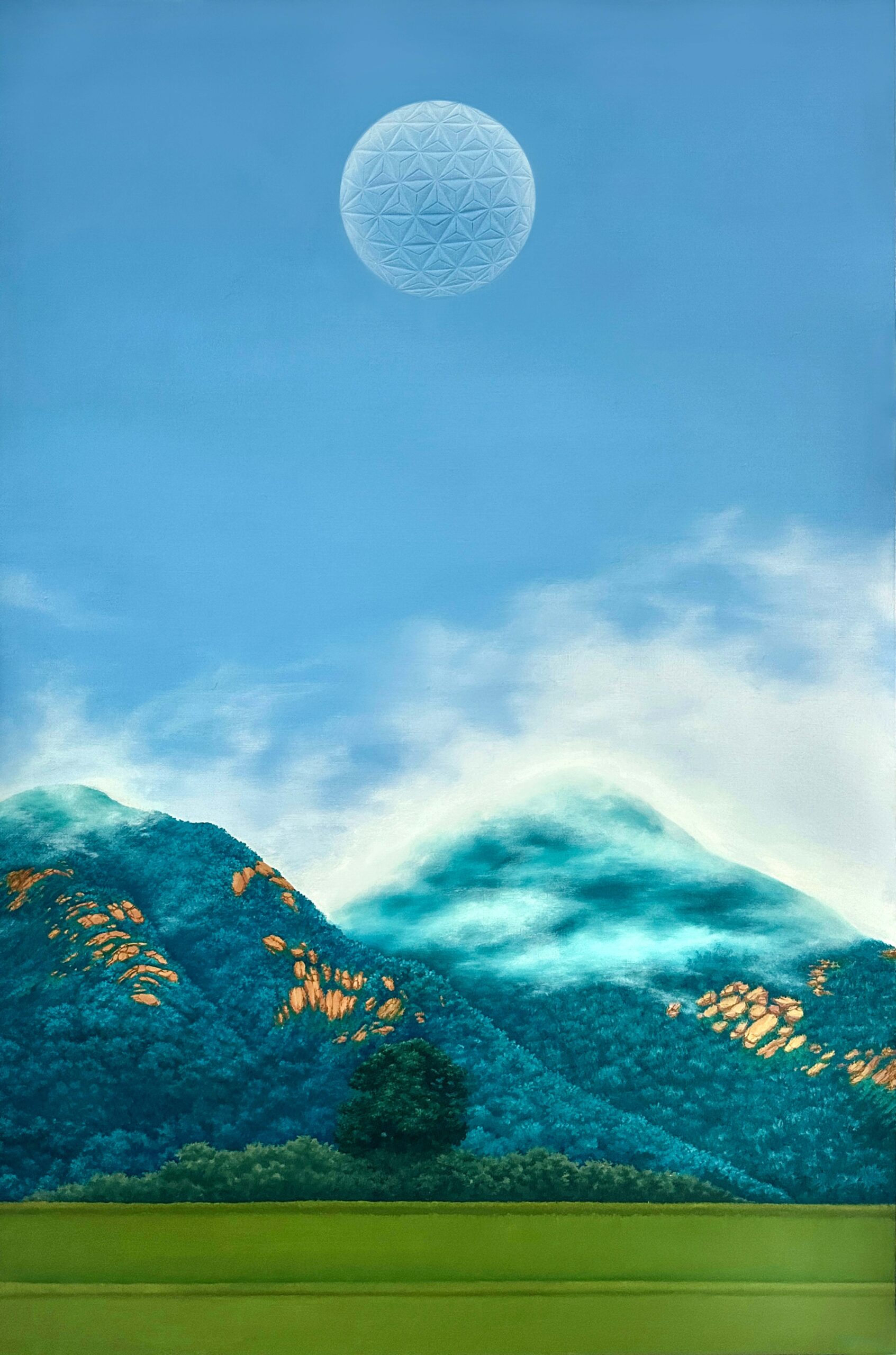 작가 김미지(Kim Mi Ji)는 자신 스스로의 내면을 탐구하는 여정 속에서 일상의 감정과 경험을 시각적으로 표현합니다. 그의 작업은 삶에서 마주하는 내면의 평화와 날카로운 갈등을 동시에 상징하는 원형을 중심으로 펼쳐지며, 그 안에 섬세하게 배열된 프랙탈 패턴의 삼각형 조각들은 감정의 복잡성과 다층성을 드러냅니다. 일상에서 접하는 말과 감정들이 내면에 새겨지며 발생하는 상처와 갈등은 작품 속 날카로운 조각들로 형상화되고, 이는 고통을 감싸 안아 둥글게 변화시키는 치유의 과정을 은유합니다. 작가는 반복적으로 퍼티를 얇게 쌓아 올리고 조각칼로 새기는 행위를 통해 하루를 되돌아보고, 감정의 날카로움을 둥글게 빚어내는 변형의 과정을 수행합니다. 이는 단순히 개인적인 치유를 넘어, 하늘의 색을 입힌 작품 표면 위로 일기처럼 기록된 감정의 흔적을 통해 관람객과 깊은 사유를 공유하고자 하는 시도입니다. 김미지는 이러한 치유와 성장, 그리고 자기 성찰의 메시지를 전달함으로써 모든 이가 자신을 되돌아보고 격려받는 기회를 제공하고자 합니다.