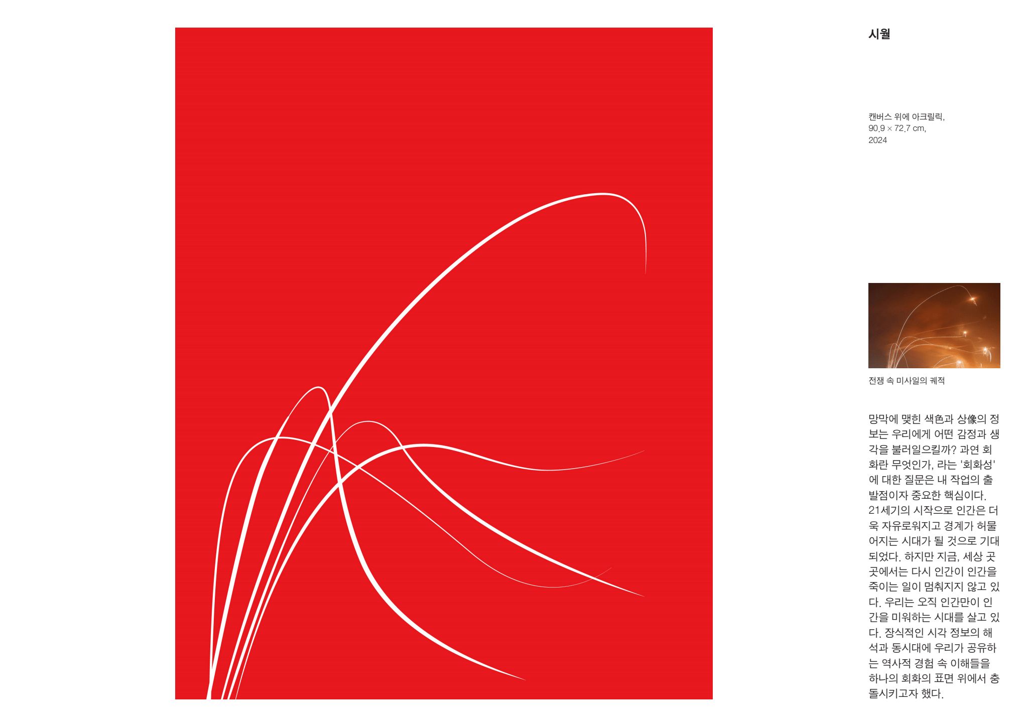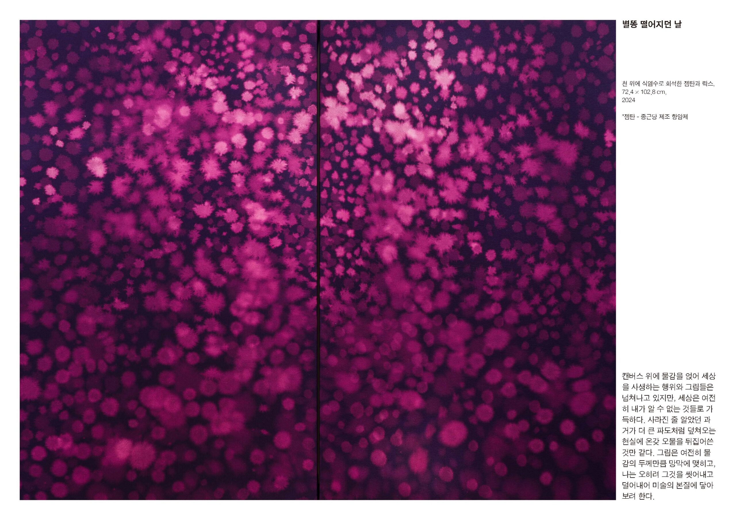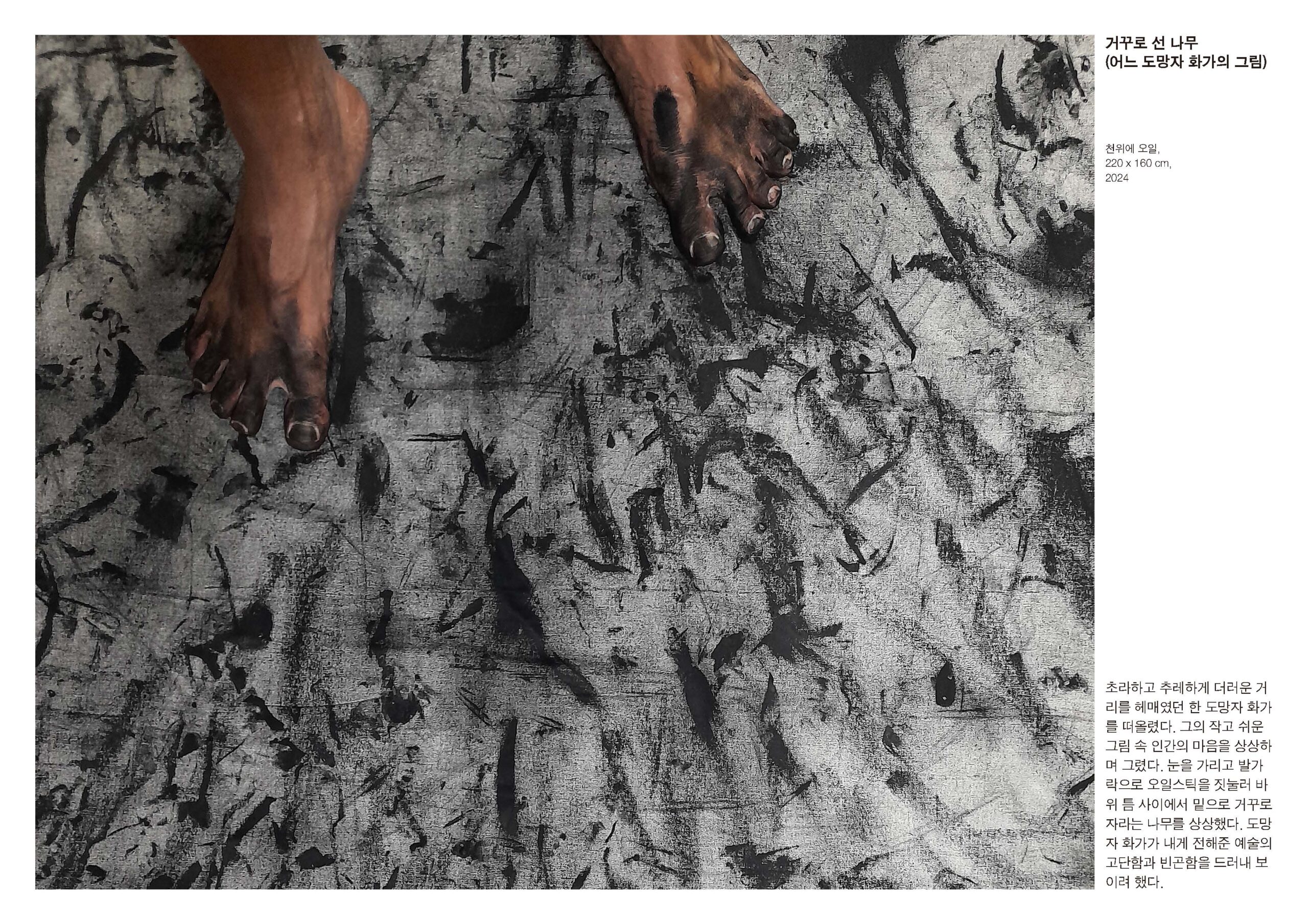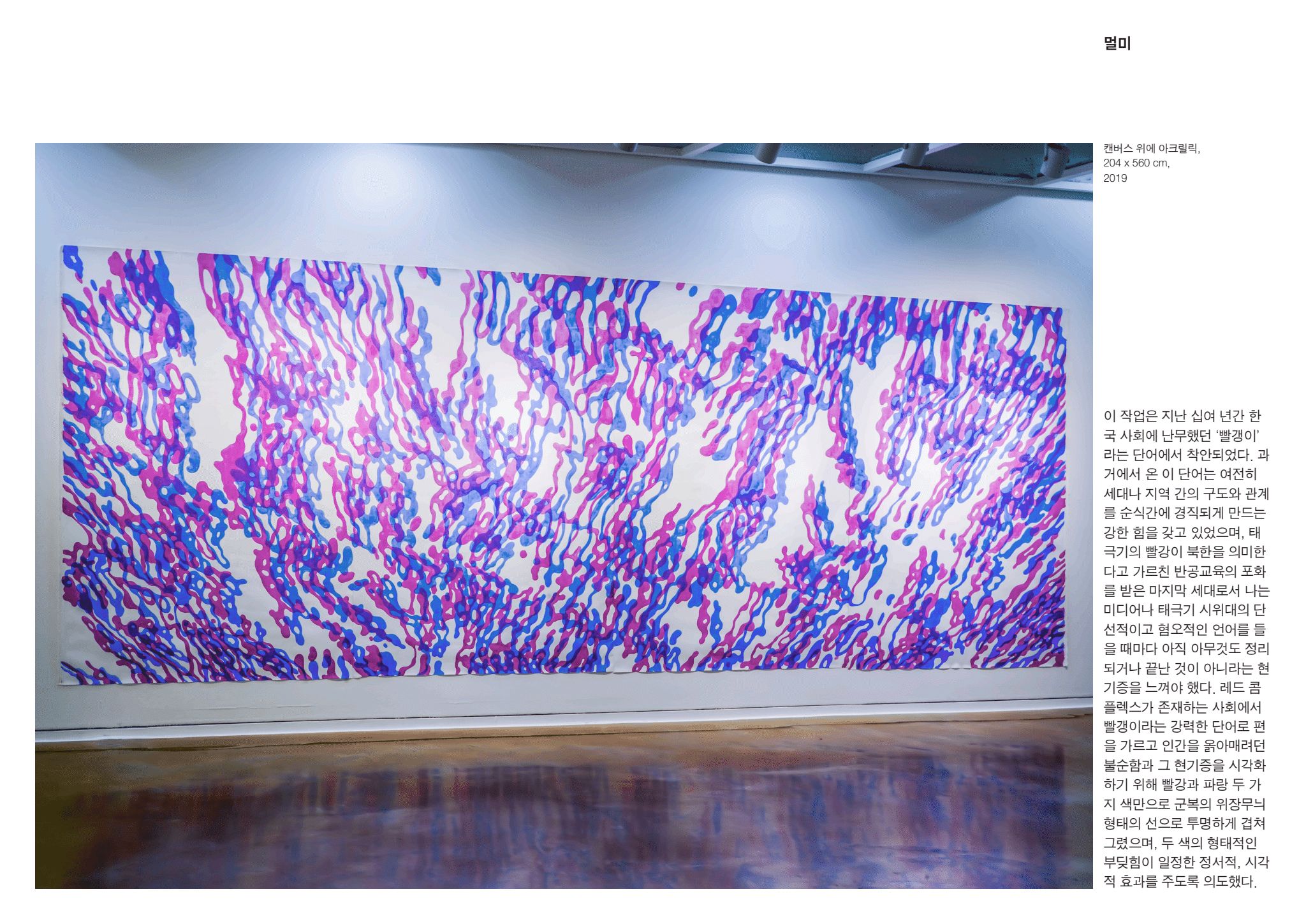Without Hands, Without Eyes While studying the flow and history of modern Korean art, I began to question the subject of art creation and the criteria for judging its value. Based on this reflection, I started my career as an artist with "The Naked Painting" (MIA Museum, Seoul, 2004), which left only traces of scratching and tearing on the canvas. Since then, centered on the theme "Is art possible without hands, without eyes?", I have been creating paintings and installation works that explore human and social consciousness. Since the Sewol ferry disaster in 2014, I have been working on the "Butterflies Project" to criticize the social division and the trend of disregarding life. I have participated in solo exhibitions such as "Meari (Echo)" (SongEun Art Space, Seoul, 2015) and "Sickness" (CR Collective, Seoul, 2017), as well as group exhibitions like "Border Crossings" (Kunstmuseum Bern, Bern, 2021) and the 3rd Jeju Biennale (2022).